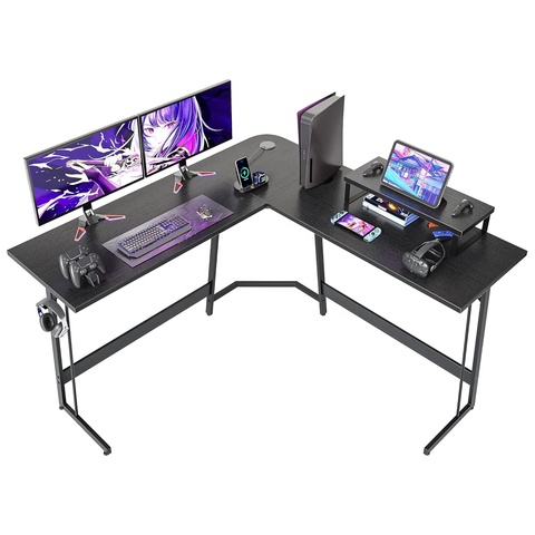 Mesa de canto com suporte de copo em forma de L com luzes LED RGB Mesa de jogos com luzes LED e tomadas de energia